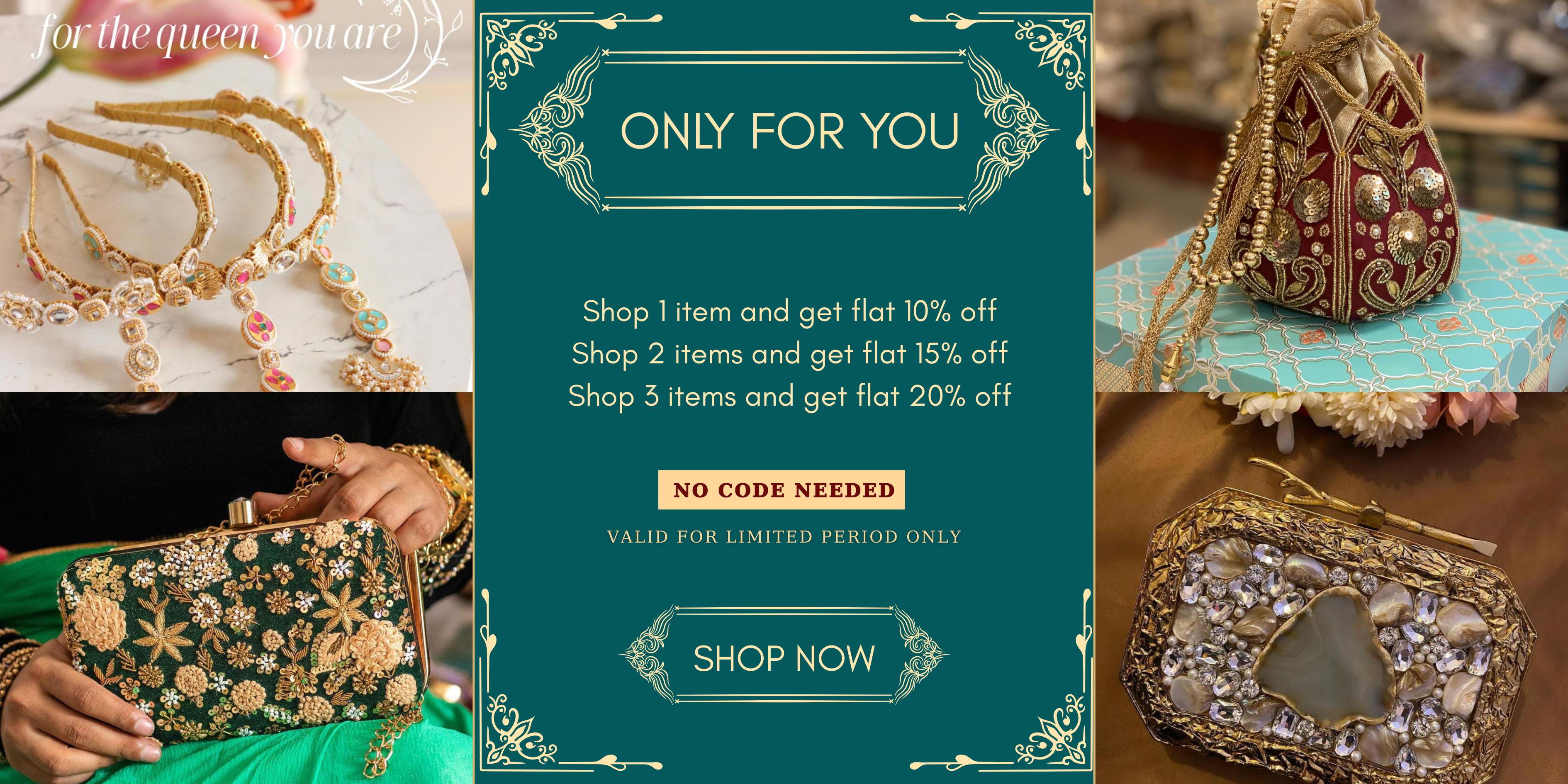 Explore a stunning range of potli bags perfect for weddings, parties, and...