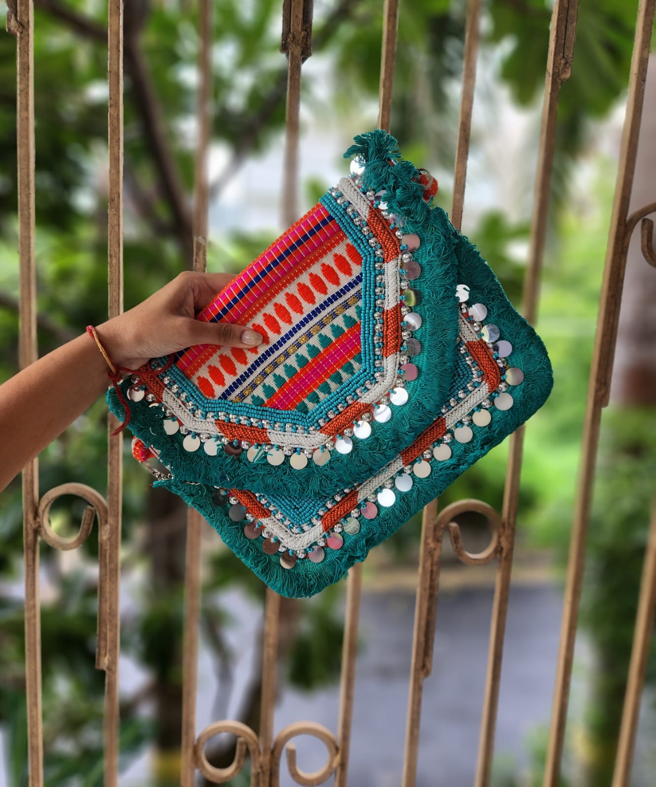 Handmade banjara bag with fringe work
