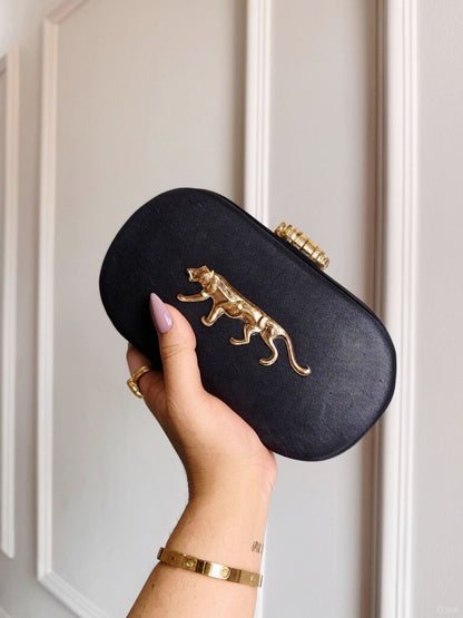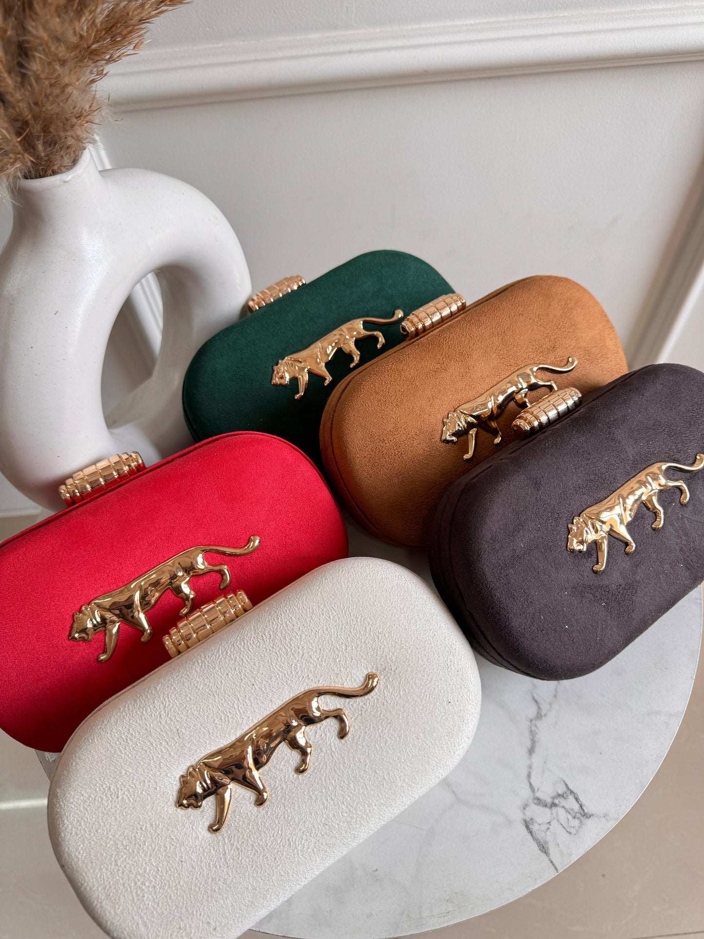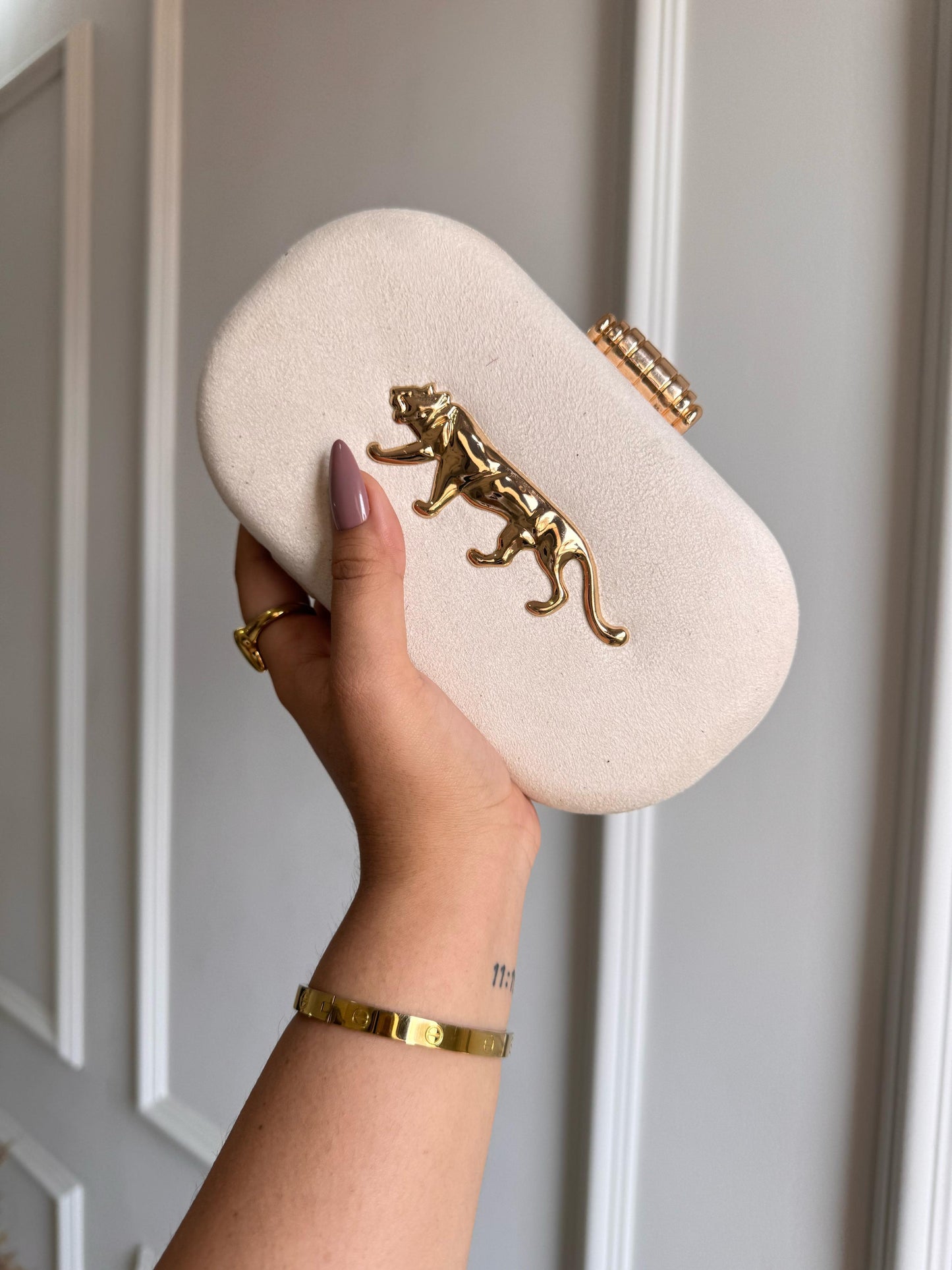 Jaguar Metal Embellished Suede Covering Clutch bag