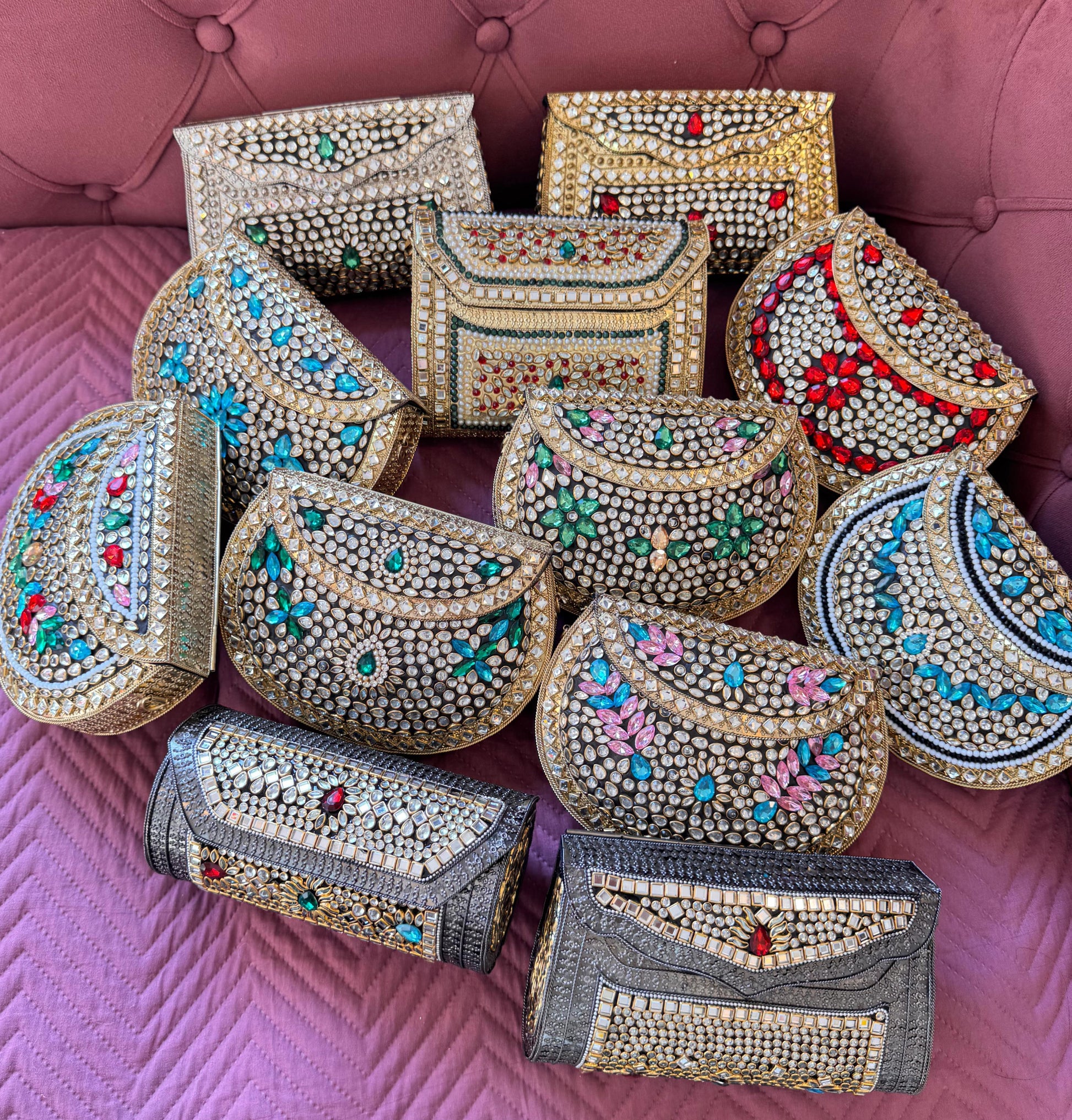 Kundan brass clutch edit😍 Beautiful rhinestones studded with kundan work